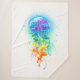 Água-viva grande, iridescente, desenhada artisticamente, brilhante, com longos tentáculos em branco, pintada sobre fundo de aquarela multicolorido. Água-viva arco-íris.