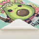 Um personagem fofo de abacate é vestido como um guerreiro asteca, completo com uma morada vibrante, lança e escudo. Os grandes olhos e as bochechas redondas da personagem acrescentam um toque lúdico ao seu traje guerreiro. texto que diz: "ahuacatl" (aztec para abacate)