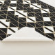 An elegant Art Deco inspired geometric pattern featuring sleek black and white symmetry highlighted with fine golden lines. The luxurious contrast and diamond motifs give it a timeless sophistication, ideal for wallpaper, fashion prints, invitations, packaging, or digital backgrounds that seek a glamorous vintage charm.
