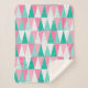 Este cobertor Sherpa tem um padrão de árvores de Natal num estilo minimalista de design de triângulos geométricos. Esta é a via colorida rosa e lacrimejante. Você pode fazer o padrão neste cobertor menor ou maior. Um belo cobertor de padrão de Natal moderno que será excelente em sua casa para seu decoro de Natal rosa e teal.