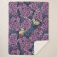 Design de primavera com dois pássaros azuis com duas tetas percorrendo galhos liláticos floridos. Desenhado à mão no padrão de vetor sem costura do Illustrator.