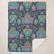 Este cobertor do Sherpa apresenta flores em tons de roxo, azul e verde-oliva cercados por frondes roxas e folhas de samambaias roxas mudas em um fundo azul escuro.