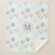balões pastel em um marinho, padrão de cores douradas e escamoteadas para um cobertor de crianças simpáticas. seu próprio monograma em serif é centrado em um círculo