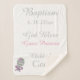 Elegante Bebê Baptismo mantém o item para personalizar com os Nomes Primeiro e Médio do Bebê no texto da rosa claro, e Data do Batismo em prata. Batismo, Deus abençoe, Criança de Deus está escrita em prata. A pequena e elegante menina rattle está no canto inferior esquerdo de um cobertor de tamanho médio com estrela rosa, a aparência de um arco cor-de-rosa brilhante e bonito. O amor é escrito em texto branco dentro de chocalho. Bonito cobertor de velo para a menina, afilhada. NOTA: Dependendo do tamanho, você pode ajustar o tamanho do Baby Rattle clicando em personalizar e pressionando o botão e aumentar para aumentar em pequenos incrementos (se um ponto de exclamação de aviso aparecer diminuir em um incremento), e pode mover a imagem e a posição do dentro de Amor. Trabalho de arte gráfico original e Design © TamiraZDesign.