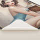 Uma mulher glamourosa com um vestido azul-claro de sacola se posiciona ao lado de uma mesa de madeira com um livro aberto e uma foto enquadrada. Seu penteado e traje evocam um vintage, retrô-se. Leia A História Em: https://xzendor7.com/elegant-pin-up-girl-beauty-in-satin-blue-attire/
