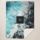 Cobertor Sherpa Blue Black Ocean Waves Hawaii Monograma