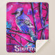 Cobertor Sherpa Blue Jay Bird Tree Branch Pink Personalized