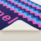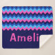 A medium sized, monogrammed sherpa blanket featuring a bright, colorful pattern design of blue and pink chevrons.