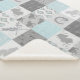 Faux manta de retalhos Sherpa Blanket em aqua e cinzas. Cavalos selvagens, sapatos de cavalo, flechas, flores e designs Kilim.