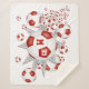 O título de futebol desta garota fofa, Sherpa fleece Blanket, apresenta uma "explosão" de bolas de futebol com painéis vermelhos e brancos em tamanhos variados e forma de estrela de cinza com bolinhas brancas - personalize com o monograma e número de camisa do jogador - katz_d_zynes