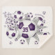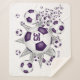 O cobertor de chamas Sherpa fleece, tema de futebol desta menina legal, apresenta uma "explosão" de bolas de futebol com painéis roxos e brancos em tamanhos variados e forma de cinza com bolinhas brancas - personalize com o nome e número de camisa do jogador - katz_d_zynes