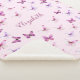 Este cobertor bonito de sherpa, borboleta rosa, é perfeito para o quarto de uma garota. Ele apresenta um padrão de borboleta em um fundo rosa, e texto que você pode personalizar com sua própria escolha de nome. O modelo é personalizável no editor de listagem.