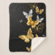 Borboletas Douradas, joias e brancas sobre fundo preto. Borboleta ouro.