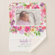 Um cobertor de bebê monograma personalizado com suas fotos e texto. Esta design de menina divertida apresenta uma borda floral colorida de aquarela em torno de sua foto recém-nascida. Adicione abaixo o nome do seu bebê monograma, estatísticas de natalidade ou outro texto personalizado. Use as ferramentas de design para editar as fontes de texto e as cores e adicionar mais fotos para criar um cobertor de fotos de bebê de manutenção gentil.