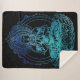 Este na moda e um cobertor aconchegante apresenta um fundo preto com uma grande imagem ilustrada do flamejante Buda. O Buda é impresso num estilo iridescente, design de folha de cor azul e lacrimejante. A cor e o azul contra o fundo preto adicionam um toque bonito e místico e excelente ao seu decor espiritual ou místico.
