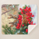 Bunnies & Berries Sherpa Blanket - as cores são castanha, vermelha, branca e verde.