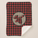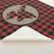 Este bonito cobertor de sherpa rústico apresenta um padrão de xadrez de búfalo vermelho e preto. No centro há uma faixa de círculo bronzeada com uma cabeça de alce de xadrez vermelha e preta correspondente.