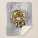 Cabeça conceitual, mecânica, humana com manômetro antigo e engrenagens metálicas contra fundo industrial das cinzas. Estilo Steampunk.