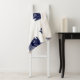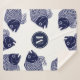 Cabeças de peixes azuis marinhos náuticos a negrito num cobertor de velo de sherpa. Ele também apresenta sua letra monográfica em texto branco.