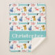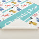 Padrão de cão engraçado, pequeno e colorido. Um cobertor de bebê bonito personalizado com o nome do seu pequeno.