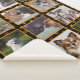 Conheça este cobertor de fotos de cães e gatos giros com doze fotos personalizadas, enquadradas em laranja com um padrão de impressão de pata amarela, laranja e marrom sobre fundo preto. Adicione seu próprio toque especial com suas fotos favoritas de estimação.