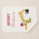 Uma bela ilustração de uma escavadora de brinquedo amarelo vestindo um chapéu de Papai Noel e decorado em luzes de Natal cavando alguns presentes de Natal com palavras "Feliz Natal". Perfeito para amantes de caminhões de construção de todas as idades. Um cobertor de Natal ideal para entusiastas de caminhões escavadores grandes ou pequenos, meninas ou meninos.
