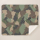 Para aqueles que estão no exército ou apenas na camuflagem do amor, este confortável cobertor Sherpa é o presente perfeito. O padrão do camo da floresta é preto, verde-khaki, bronzeado e marrom. Desenhado pela artista ©Susan Coffey.