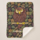 Ilustração de desenho animado de coruja sentada em galho de árvore sobre fundo escuro. Custom Text.