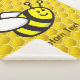 Cartoon voador de abelha sorridente sobre fundo de colmeia de abelha sem costura.