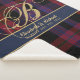 Um presente elegante para o novo Sr. e Sra. com um sobrenome Borwn Tartan em cores azul e vermelha com letras e palavras de caligrafia dourada. Adicione o monograma do apelido recém-casado, a data do casamento e os nomes próprios para criar um presente comemorativo único.