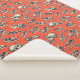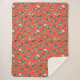 Este cobertor do Sherpa apresenta crânios de dinossauros ilustrados manualmente em azul marinho e creme num fundo vermelho-alaranjado brilhante.
