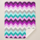 Um cobertor sherpa de tamanho médio com um lindo e colorido design de chevrons em ameixa roxa, lilac, branco, minúsculo, turquesa e cinza.