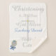 Elegante Baby Christening mantém um cobertor de tamanho médio com cruz prateada pintada manualmente no centro com o aspecto de sotaques dourados. Personalize com o nome do bebê primeiro e médio em texto azul, e Data de Natal em roteiro prateado. Cristo, Deus abençoe, Criança de Deus está escrito em prata. O pequeno e elegante bebê rattle está no canto inferior esquerdo do cobertor com a estrela azul, a aparência de um arco azul brilhante e bonito com sombra. O amor é escrito em texto branco dentro de chocalho. Um belo cobertor de velo faria um presente especial para o bebê, filho da puta. Perfeito para exibir fotos acarinhadas na geladeira, no cavalete, no arquivo, etc. Trabalho de arte gráfico original e Design © TamiraZDesign.