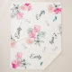 Personalize um cobertor de bebê com minhas flores originais de aquarela em cinza e pinks. Nome repetido ao longo do tempo, um presente único para novos pais e seu bebê recém-nascido. Moderno e chique. Rosas, peônias, folhas, pétalas, folhagem.