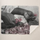 Cobertor Sherpa Cinza e Flor Rosa nas Mãos