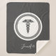 Cinza personalizada Hamd Lettered Medical Caduceus Sherpa Blanket é moderna projetada com cinzas personalizáveis de fundo na frente e um grande círculo branco no centro com um símbolo caduceus preto e seu nome sobreposto em letras brancas.  Faz uma ideia de presente de excelente para uma enfermeira ou um médico na graduação ou em qualquer ocasião.