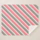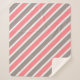 O cobertor de sherpa moderno para o quarto de meninas apresenta um padrão diagonal listrado em vermelho, cinza e branco.
