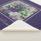 Linda, roxa, clematis floresce com capa de manuscrito vintage limitada com moldura prateada, com texto modelo abaixo. Dá a casa um estilo e calor elegantes e modernos.