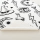 Coisas mágicas, tinta desenhando sobre fundo branco. Padrão sem costura
