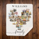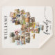 Crie o cobertor sherpa de colagem de fotos da sua família personalizada com 30 das suas fotos favoritas num design de estilo de álbuns em forma de coração. Personalize com o nome da família na tipografia elegante moderna para um presente de fotografia personalizado ou decoração doméstica.