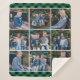 Um cobertor de fotos xadrezes acolhedor para mostrar as belas fotos da família capturadas da sua sessão de fotos de feriado. O design moderno e simples inclui uma colagem fotográfica de nove (9) imagens em forma quadrada com um design de xadrez de verificação de búfalos verde e preto. Fotografia: SunFeader Fotografia: www.facebook.com/SunbeamPhotography