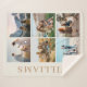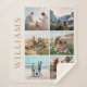 Crie seu próprio cobertor personalizado de colagem de fotos. Adicione suas próprias 6 fotos e monograma personalizado ou texto personalizado a este simples design de cobertor moderno.