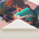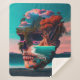 A skull head has been completely colored in an abstract style to bring you into the world of creativity and surreal design, in the style of photo-realistic landscapes, tropical landscapes, futuristic realism, pixelated realism, light crimson and sky-blue, surrealistic dreamscapes