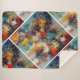 Este apresenta um design de arte moderna com cores primárias arrojadas e pinceladas dinâmicas. Mostra linhas vibrantes e formas com sotaques frágeis e vívidos, perfeitos para um olhar contemporâneo e colorido.