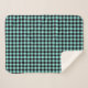 Este cobertor Sherpa quente e aconchegante é mostrado em um lindo design de xadrez búfalo na cor aqua.