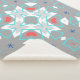 Beautiful geometric mandala pattern featuring a vibrant color palette of coral red, turquoise blue, soft gray, and crisp white. This intricate symmetrical design combines floral motifs with geometric precision, creating a mesmerizing kaleidoscope effect that draws the eye to its centered composition.