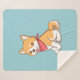 Cobertor Sherpa Cute Puppy Dog Shiba Inu on Blue