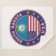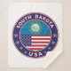 Crachá de Dakota do Sul com bandeira de Dakota do Sul e bandeira de cores dos EUA, forma arredondada. Emblema de Dakota do Sul. Selo de Dakota do Sul. Coleção dos Estados Unidos.