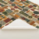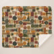 Sophisticated mid-century geometric pattern blanket featuring layered circles, arches, triangles, and rectangles in forest green, burnt orange, ochre, and cream on a black background. Rich textures and retro-modern shapes create a bold design ideal for Bauhaus lovers, vintage décor fans, and anyone drawn to moody modern style.