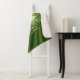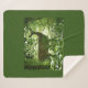 Um cobertor sherpa de tamanho médio com uma foto de um veado na floresta sobre um fundo verde.